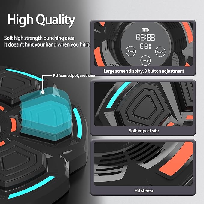 - 【Upgraded Music Boxing Machine】Enhance your boxing experience with our musical boxing machine, LED boxing light effects, connect your phone via smart wireless to play your favorite music during boxing training, stereo surround sound immerses you in the rhythm and Melodies that make your workouts fun and motivational.