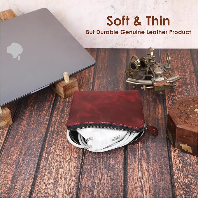 - AUTHENTIC FULL-GRAIN LEATHER – Made from 100% full-grain leather, this red zipper pouch is built for long-lasting durability. The bold yet sophisticated color ensures that it remains a timeless makeup case, complementing any collection of premium leather accessories.