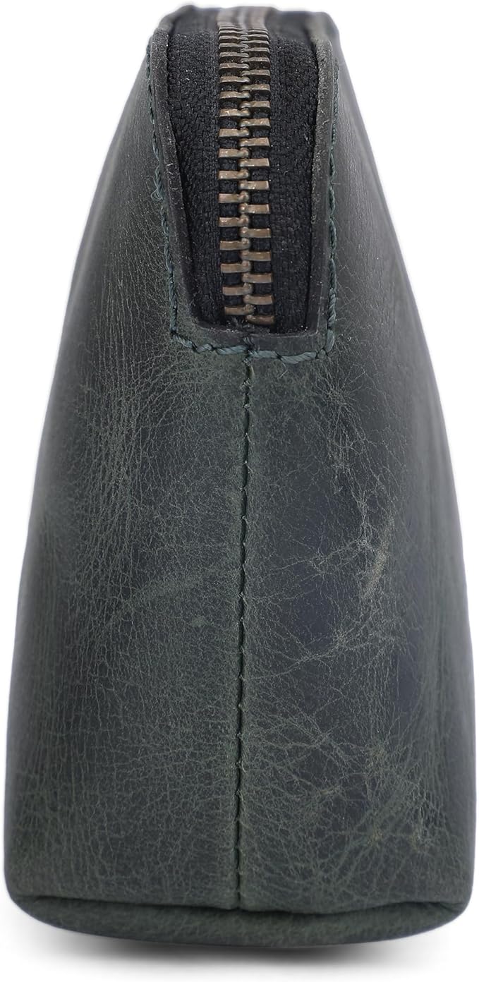 The Antiq Leather Cosmetic Bags Make Up Bags for Women - Handmade Makeup Case Small Makeup Bags Jewelry Coin Pouch, Toiletry Bag for Men, Travel Cosmetic Pouch For Purse- Forest Green