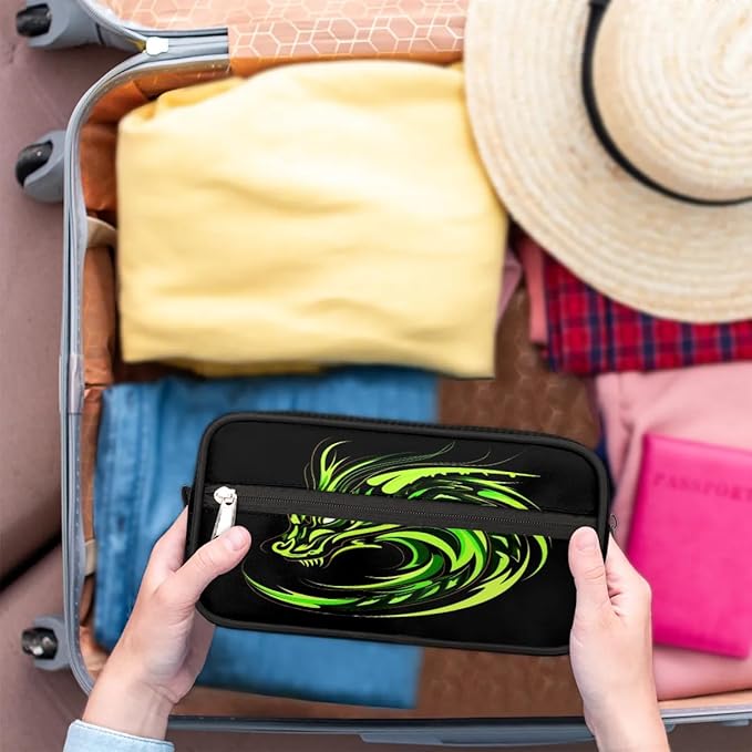 - 【Large Capacity】Our fire dragon toilet bag makeup travel bag has 4 compartments.There is a large main compartment that can store various toiletries and cosmetics.Waterproof transparent PVC pockets,breathable mesh pockets,zippered front pockets,can separate dry and wet items or store small items.The hanging makeup bag comes with a handle,allowing you to carry it with you anytime,and the Velcro closure design helps you quickly remove your toiletries.Can carry all women and men.