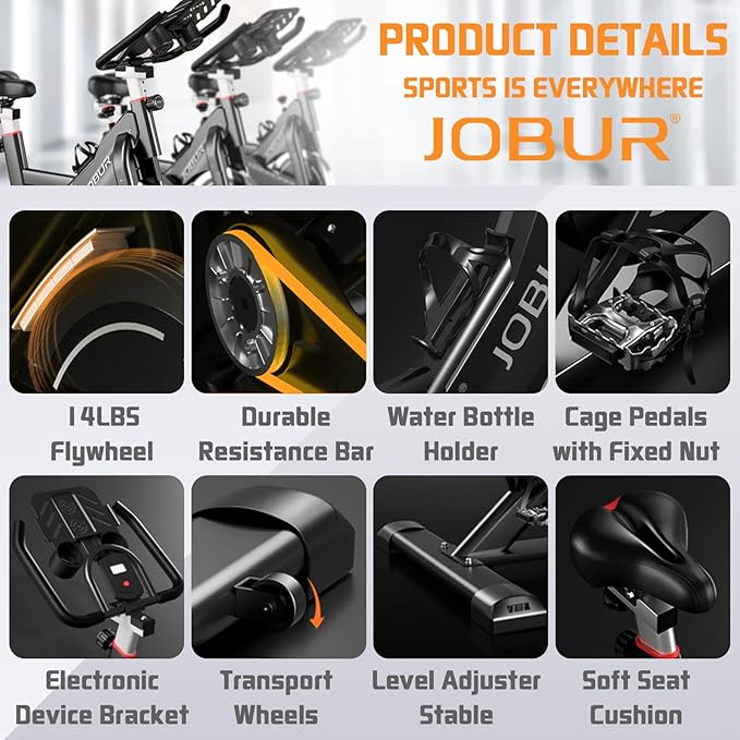 - 【JOBUR is trustworthy】JOBUR is a trusted leading brand of fitness installatios, we always put the customer experience first, and are committed to making our customers fall in love with fitness and fun fitness! We are committed to providing excellent customer service, JOBUR exercise bike is a great choice for your home use. We are confident that you will love this indoor bike.