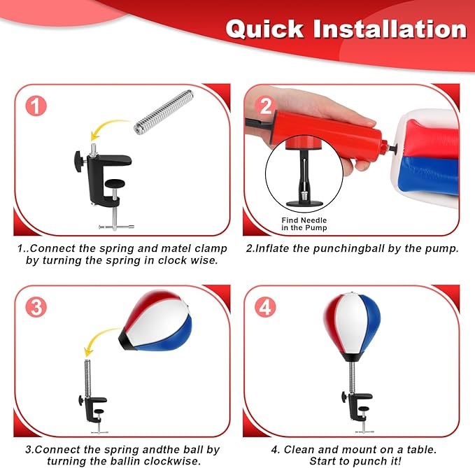 - Set Up in 1 Minute: The stress buster punching bag is very easy to install. It comes with an air pump to ensure that the ball is always inflated and ready for action. No screws needed to attach it to your desk or countertop, great for home or work environments
