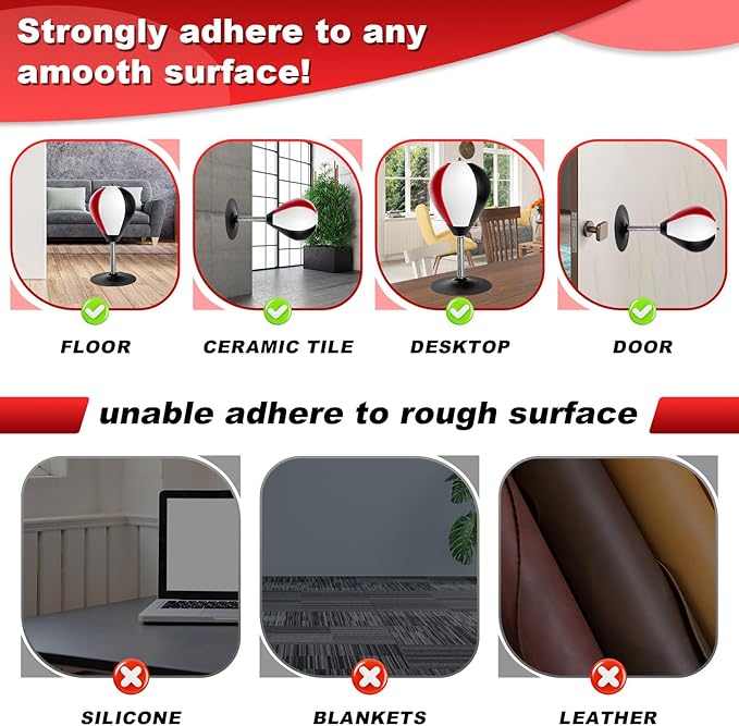- Upgrade to a Larger Size: Desk punching bag with new upgrades! Larger ball with durable strong impact spring, stronger suction cups to hold firmly in place and minimise disruption, don't come off easily with constant striking(wet suction cups are more powerful)