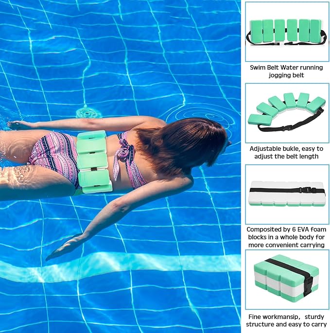 - Practical Swim Belt: the water weights equipment consists of 6 EVA foam blocks, sized at around 16.6 x 5.9 x 1.85 inches, suitable for waist sizes from about 22.8" to 42.1"; The swimming belt comes with a durable adjustable shoulder strap and buckle that can be fixed at the waist for easy adjustment; Provides you with flotation assistance while in the water, ideal for non swimmers or beginner swimmers who need support