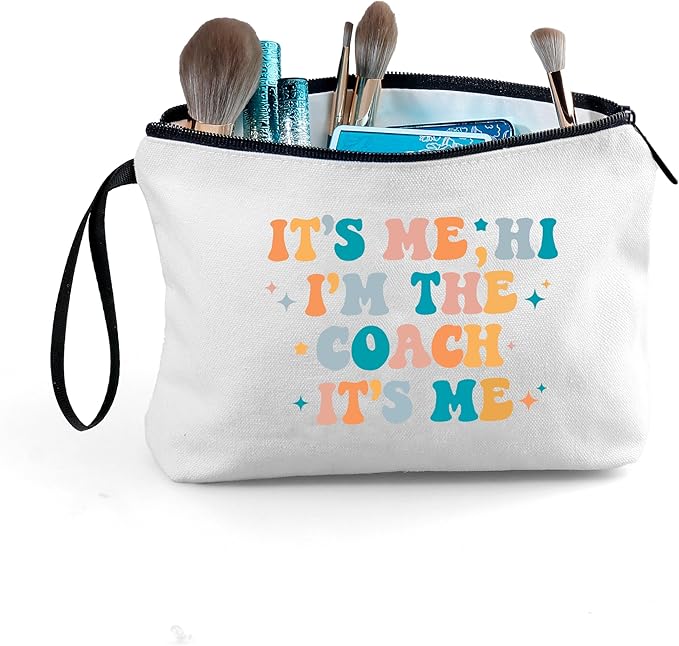 Coach Appreciation Thank You Gifts for Soccer Volleyball Basketbal Cheer Gymnastics Football Coach Funny Makeup Bag Women Its Me Hi Christmas