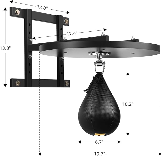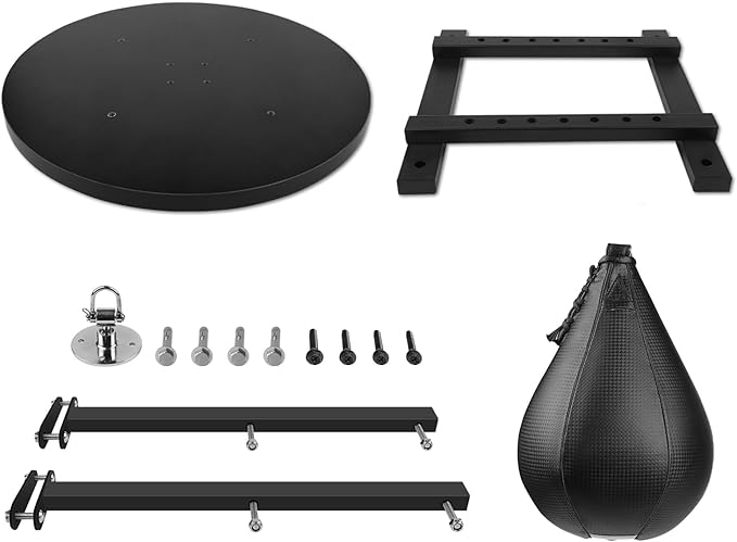 - Package Includes: 1 wall-mount frame, 2 steel tube, 1 Hardwood platform, 1 Speed bag bearing swivel, 1 speed bag(10‘’x7"), 1 Hand pump with Air needle, Screws
