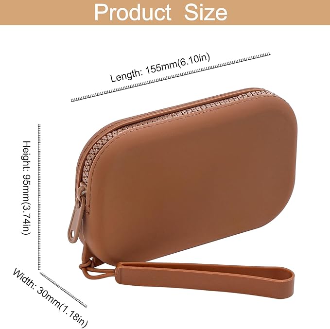 Portable Silicone Makeup Bag for Women, Small Travel Waterproof Toiletry Cosmetic Bag, Zipper Closure Organizer Makeup Case with Handle (Brown)