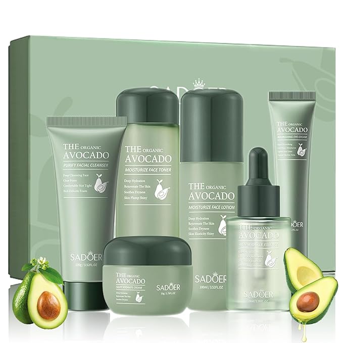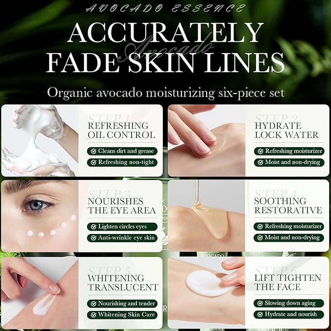 6Pcs Avocado Skincare Set, 6-In-1 Hydrating Skincare Gift Kit with Facial Cleanser, Face Toner, Anti-wrinkle Serum, Face Lotion, Face Cream & Eye Cream, Moisturizing Anti-Aging Skin Care Kit