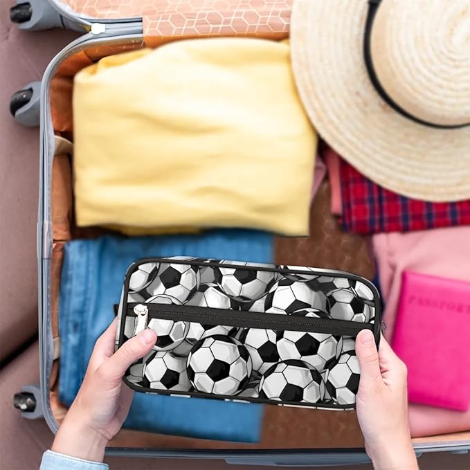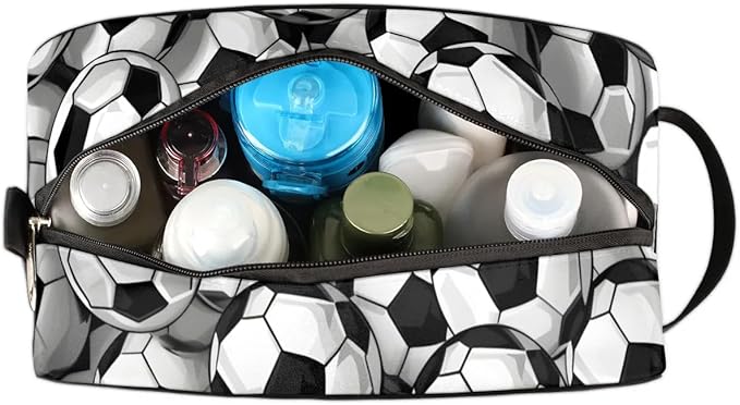 - 【New Handheld Design】Travel soccer toiletry bag have added a handheld design,allowing you to hang them on your hand for easy carrying.Zipper closure, convenient to use,no longer unable to open makeup bags due to wet hands.
