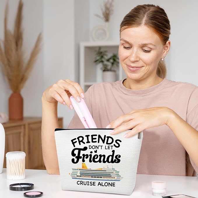 - CRUISE-READY STYLE: Elevate your travel glam with this Zipper Cosmetic Bag. Designed for cruisers at heart, the bag's sleek white canvas and "IN MY CRUISE ERA" graphic make it a must-have accessory for every voyage.