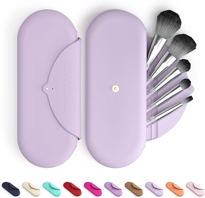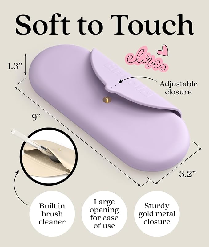 Embla Makeup Brush Holder Travel Cosmetic Case Pouch, Soft Silicone Cosmetic Bag Make Up Brushes Holder with Secure Snap Closure, Travel Makeup Brush Case, Lilac