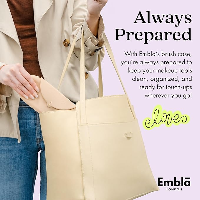 - PROTECT YOUR MAKEUP BRUSHES with the Embla makeup brushes holder. This large makeup brush organizer measures 9 x 3.2 x 1.3 inches making it the perfect size for all your makeup brushes including foundation, concealer, powder, blush, bronzer, contour, highlighter, fan, eyeshadow, pencil, smudge, eyeliner, eyebrow, lip, kabuki, stippling, duo-fiber and lip liner brushes, mascara wands and blending sponges.