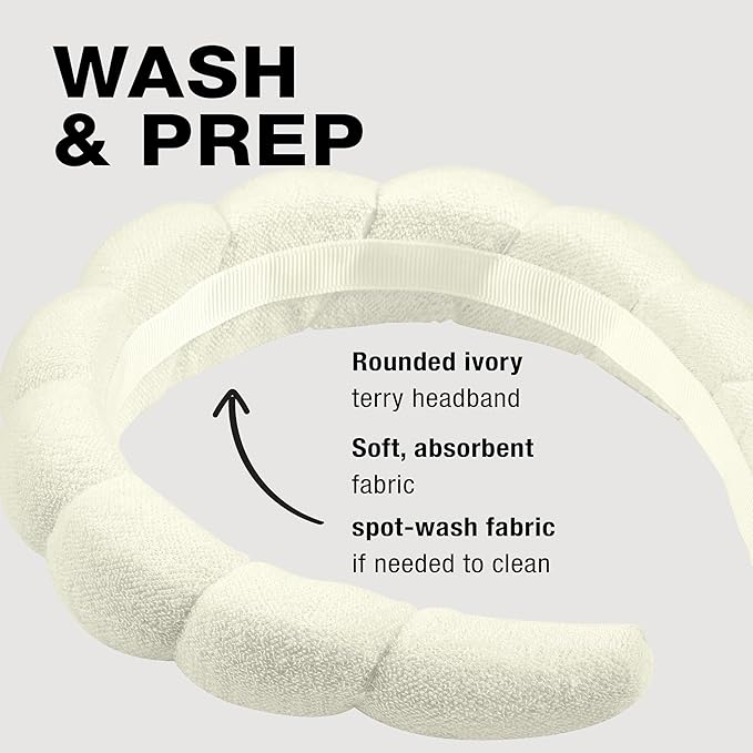 Conair Spa Headband for Washing Face - Makeup and GRWM Bubble Headband - Ivory