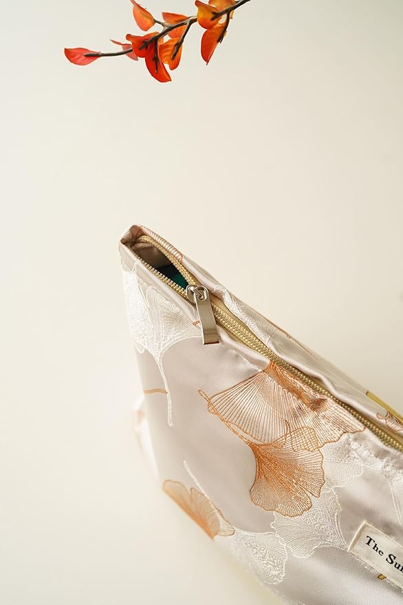 The Summer Swan | Large Aesthetic Makeup Bag | Floral Makeup Bag | Mid-day Clutch | Period Kit Bag | Hygiene Bag | Skincare Bag | Cute Makeup Bag (Ginko), CosmeticBag10575