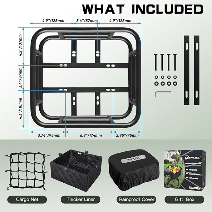 - ๐ช๐ต๐ฎ๐ ๐๐ป๐ฐ๐น๐๐ฑ๐ฒ๐ฑ: Each package includes a metal bike basket, cargo net ,rainproof cover and thick lining.You can use it to carry snacks, water cups and other small items without worrying about them falling out.