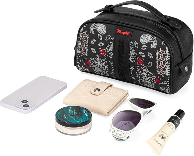 Wrangler Makeup Pouch Bag Mini Western Toiletry Purse Cosmetic Organizer Paisley Travel Pouch for Women