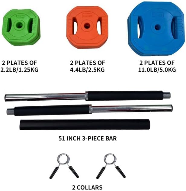 - [VERSATILITY]: Ideal for various exercises, the barbell set is perfect for personal workouts, offering versatility with its easy-to-change weight plates for both strength training and cardio pump sessions.