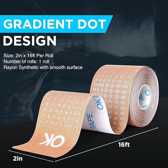 - SKIN-FRIENDLY AND LATEX FREE: OK TAPE sports kinesiology tapes are made with high-quality professional hypoallergenic adhesive, which is latex-free to minimize the possibility of skin irritation, itching and blisters.