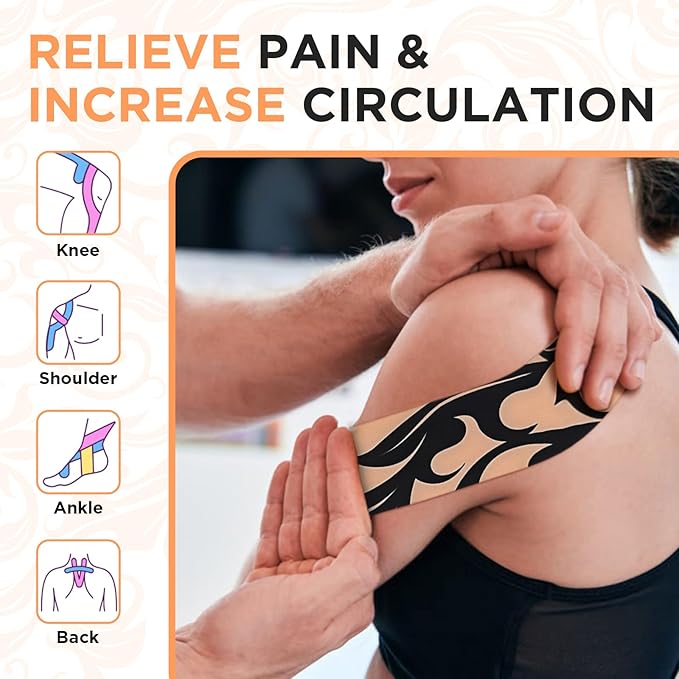 - BENEFITS: Kinesiology tape provides support and stability during sports activities and everyday life without restriction of mobility; It also helps reduce pain and swelling by increasing blood flow to speed recovery