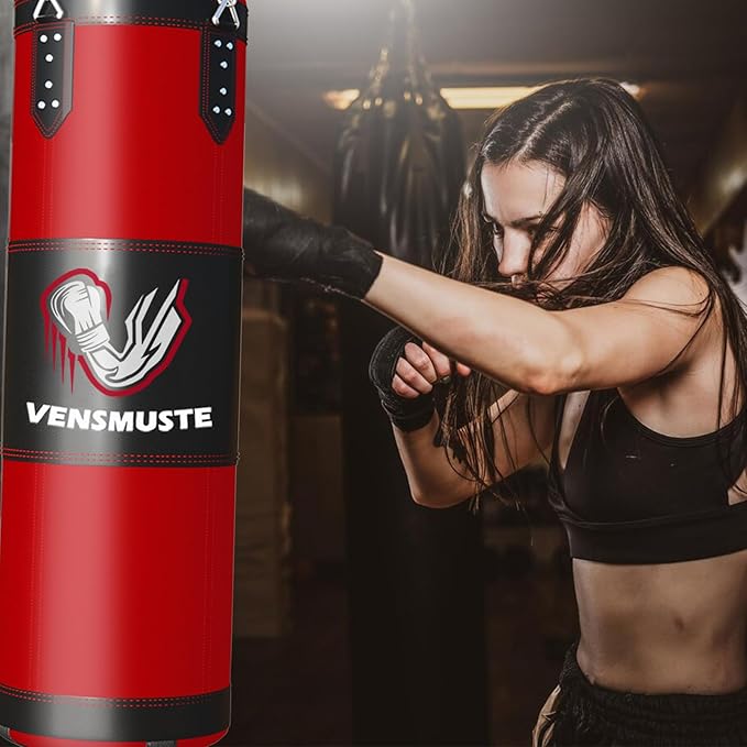 - 【Complete Boxing Equipment】Includes 1 x 4ft punching bag(Unfilled),1 x 12oz boxing gloves,1 x pair of hand wraps,1 x rotation,4 x Expansion bolt,1 x connecting carabiner,1 x boxing bag hanger,1 x jump rope,1 x grip strength trainer.