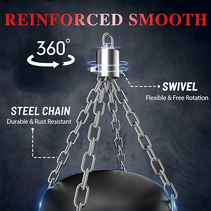 - 【Stainless Steel 360° Swivel】The sturdy 360° swivel ensures that the heavy punching bag rotates flexibly and has strong load-bearing capacity, fully ensuring your safety and stability during use.