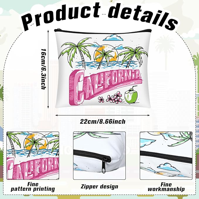 - Ample Quantity: each package comes with 9 pieces of these Los Angeles themed zipper pouches; This generous quantity makes it an ideal choice if you're looking for ideal party favors or desirable gifts; You can share them as California souvenirs or use them to house various items as a pouch purse while retaining some for your utilization