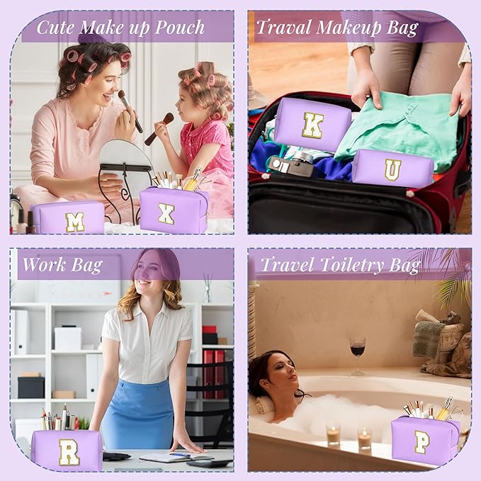 - Unique Fashion Design: You will get 2 pack makeup bag in total, features a gold glitter chenille patch with your initial for a personalized touch, make your bag unique and eye-catching. Comes with 26 letter styles to choose from, you can choose your initials or other letters with special meaning according to your preference