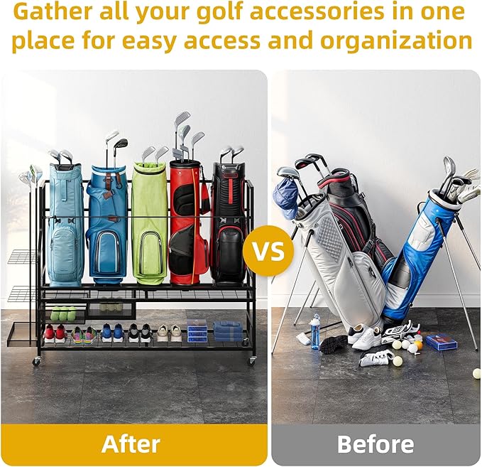 - Optimal Golf Organizing: Treasure your equipment and enjoy better game time! Our 5 golf bag organizer for garage features large, practical, and well-thought-out sections, ensuring everything is neatly placed for instant access