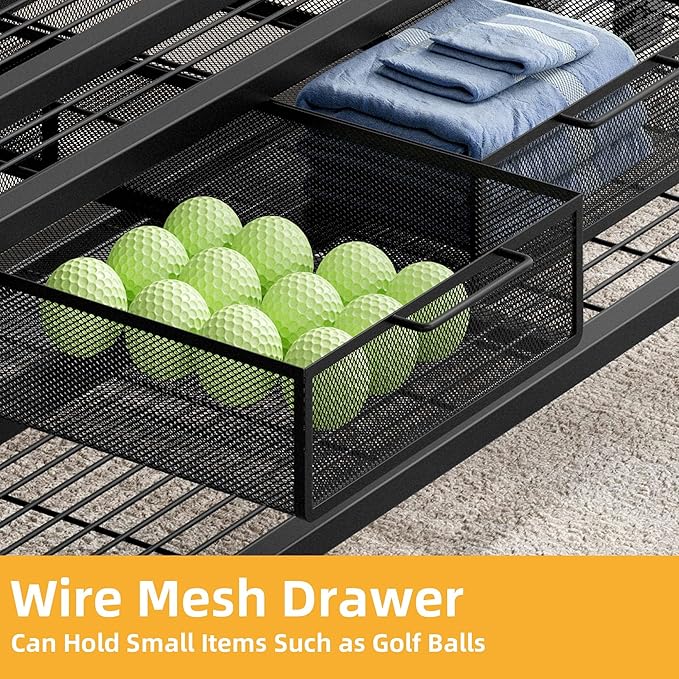 DWVO Golf Bag Organizer for Garage, Golf Storage Organizer w/Wheels for Garage Club and Shed, Golf Bag Storage Rack w/Drawer for Golf Bags, Clubs, Balls and Other Equipment Accessories