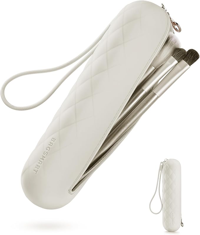 BAGSMART Makeup Brush Holder Bag with Metal Zipper Closure, Travel Make Up Brush Case Cosmetic Bag, Silicone Soft Portable Face Brushes Travel Essentials Organizer Holder, White