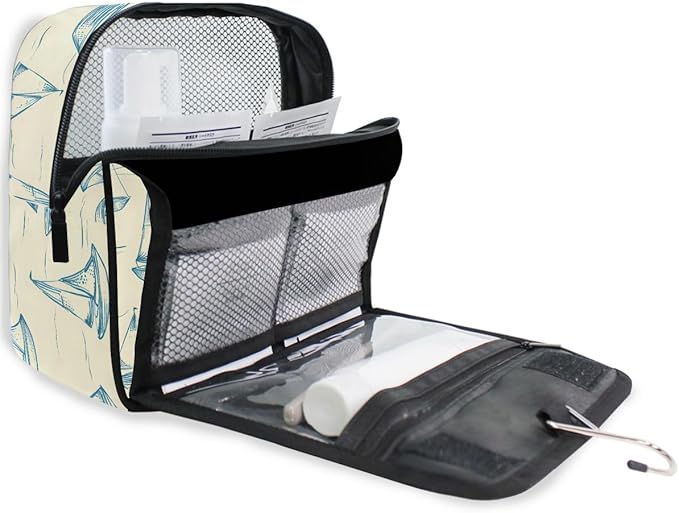 senya Hanging Travel Toiletry Bag Kit Boys Makeup Case Cosmetics Organizer for Men Women (Smallest Sailboat Lines)