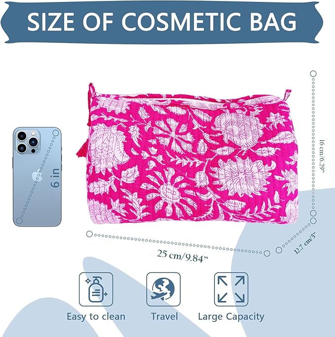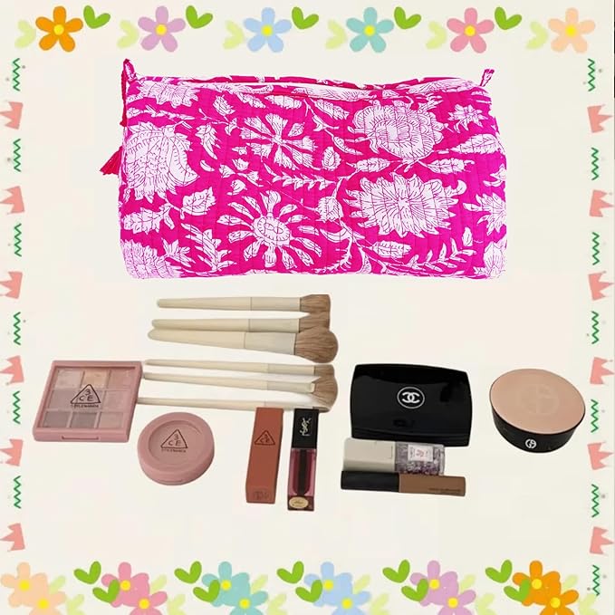 - Cute Makeup Bag: The Quilted Cotton Makeup Bag Is Made Of High-Quality Cotton, Which Is Lightweight, Portable And Good In Texture, Durable To Use. This Cute Floral Cosmetic Bag Features A Floral Pattern Design, Fashionable And Skin-Friendly, Comfortable To The Touch. The Stylish Design Makes These Makeup Bags A Fashionable Accessory, Suitable For Both Your Everyday Makeup Routine And Special Occasions, Allowing You To Showcase Your Personal Style.