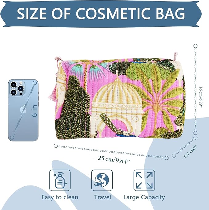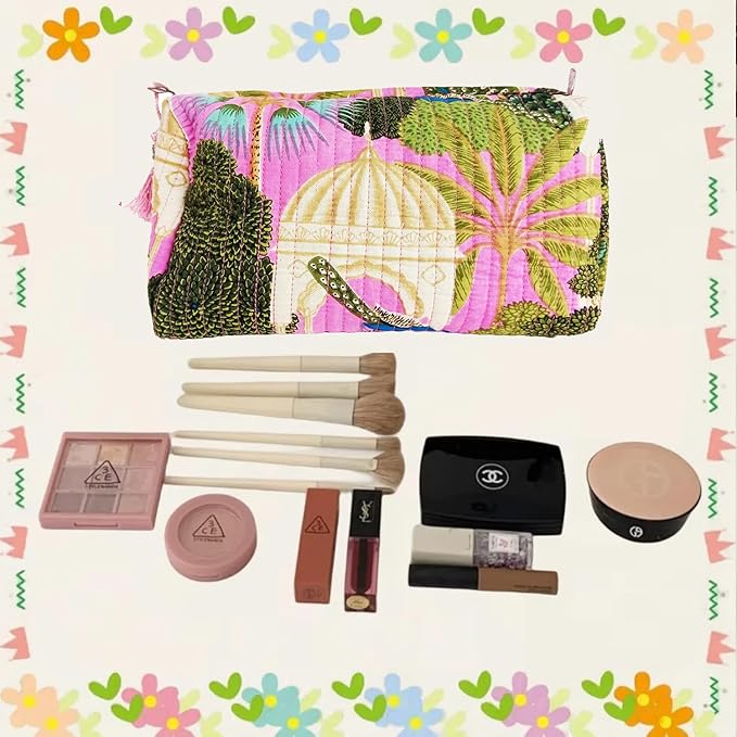- Cute Makeup Bag: The Quilted Cotton Makeup Bag Is Made Of High-Quality Cotton, Which Is Lightweight, Portable And Good In Texture, Durable To Use. This Cute Floral Cosmetic Bag Features A Floral Pattern Design, Fashionable And Skin-Friendly, Comfortable To The Touch. The Stylish Design Makes These Makeup Bags A Fashionable Accessory, Suitable For Both Your Everyday Makeup Routine And Special Occasions, Allowing You To Showcase Your Personal Style.