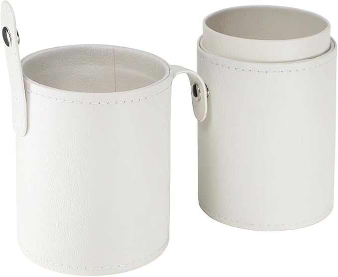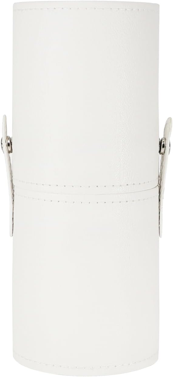 Portable Makeup Brush Case,Pu Leather Makeup Brush Holder with Button,Travel Cup Storage Dustproof Makeup Cosmetic Bags for Women (White)