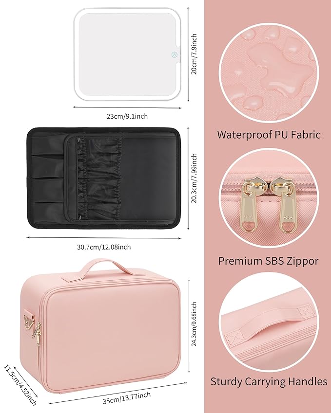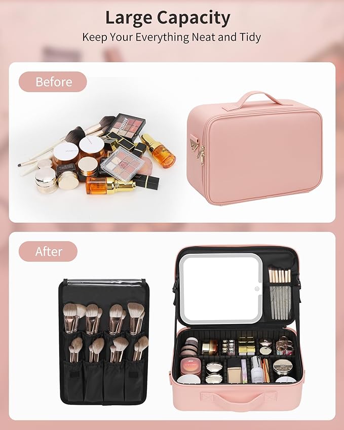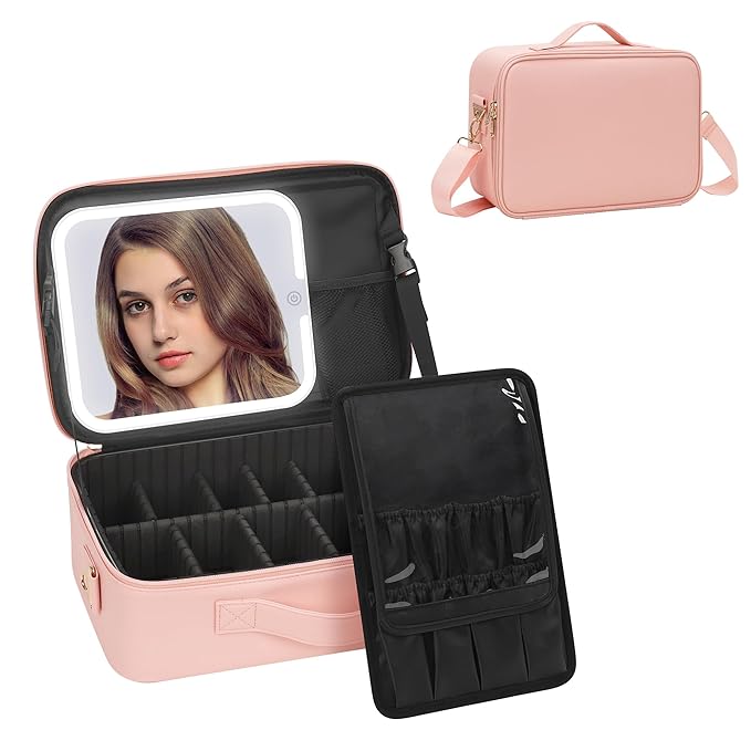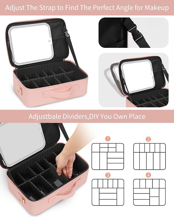 - PROFESSIONAL MAKEUP CASE: You can design yourself internal compartments by the adjustable padded dividers. Brushes not included.This makeup bag with led mirror is the best gift for mother/sister/bestie or using by one's own,gifts for Mother's Day,Christmas or Birthday Gifts.