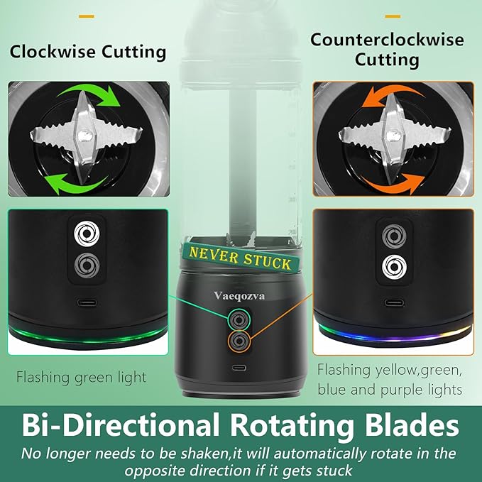 - SMART PREVENT JAMMING: The first portable smoothie blender with blades that rotate in both directions,the blending will be more powerful and effective,you will get more delicate smoothie shakes than ever before,don't worry about the blades getting jammed