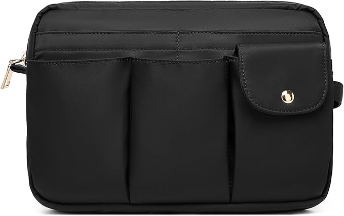 - 【Large capacity】YONBEN Storage Bag: A must-have for makeup enthusiasts, this large cosmetic bag is perfect for women on the go. With its roomy main compartment,five front pockets and A large back pocket for lipstick, tissues, headphones, and more, you can easily organize all your makeup essentials. Additionally, it features a magnetic clasp switch for added security.