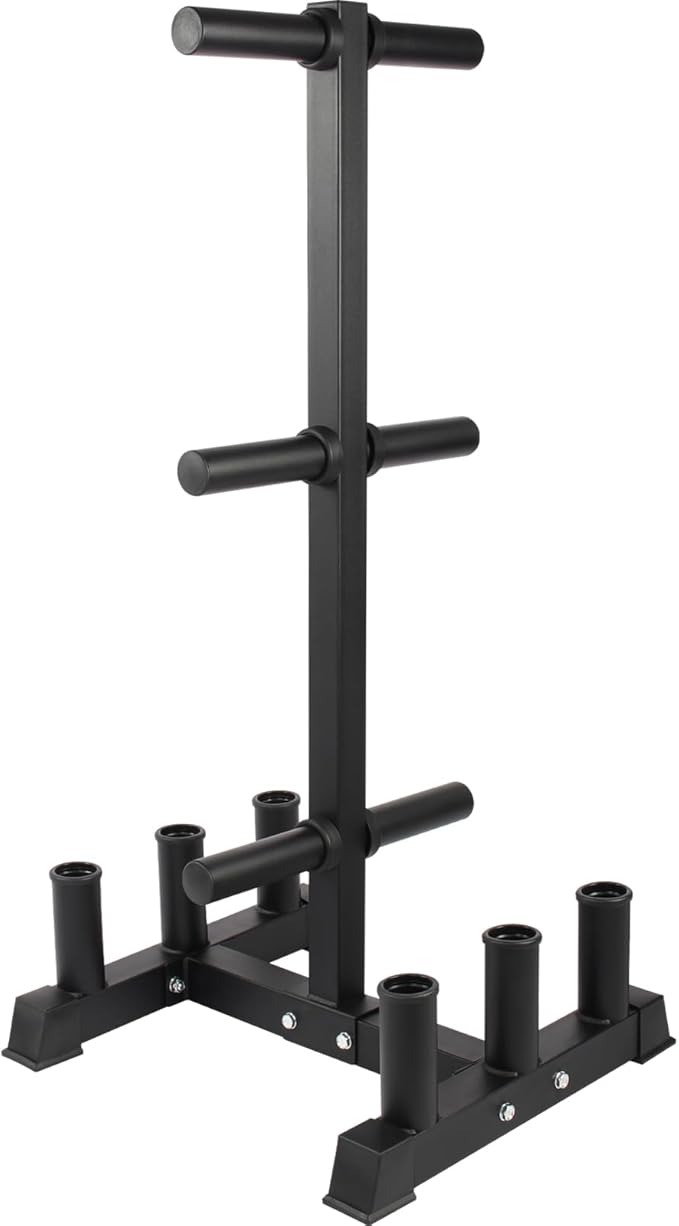 - Olympic Weight Plate Rack: This unit has 6 chrome-plated storage pegs (3 on each side) for easy organization, storage, and access to 2-inch Olympic weight plates. The plate weight tree rack also comes with 2-inch Olympic barbell sleeve inserts to keep the barbell in a safe, convenient location