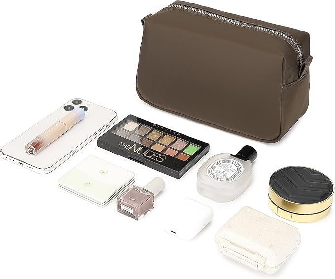 Organizer Bag Lightweight Cosmetic Bag with Ring Clasp Perfect Travel Makeup Bag for Women nylon Stand Up Design (Brown/Nylon)