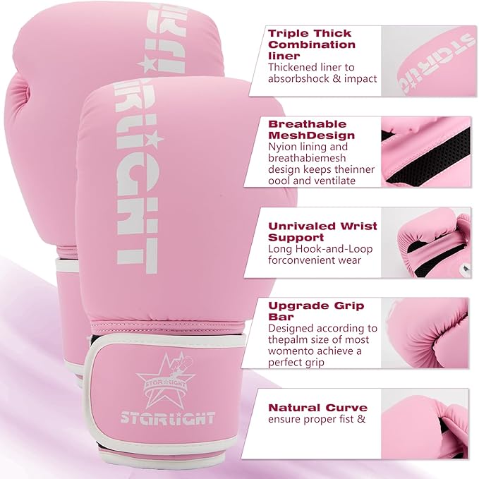 - 【High-Tech Boxing Gloves】Anatomical contour design creates a more natural and comfortable hand posture. Lightweight boxing gloves are perfect for beginner boxing training. Easy to put on and off, with good support/cushioning performance, and a sturdy palm and finger bending plate inside. Specially designed for training and accompanying, with outstanding advantages.