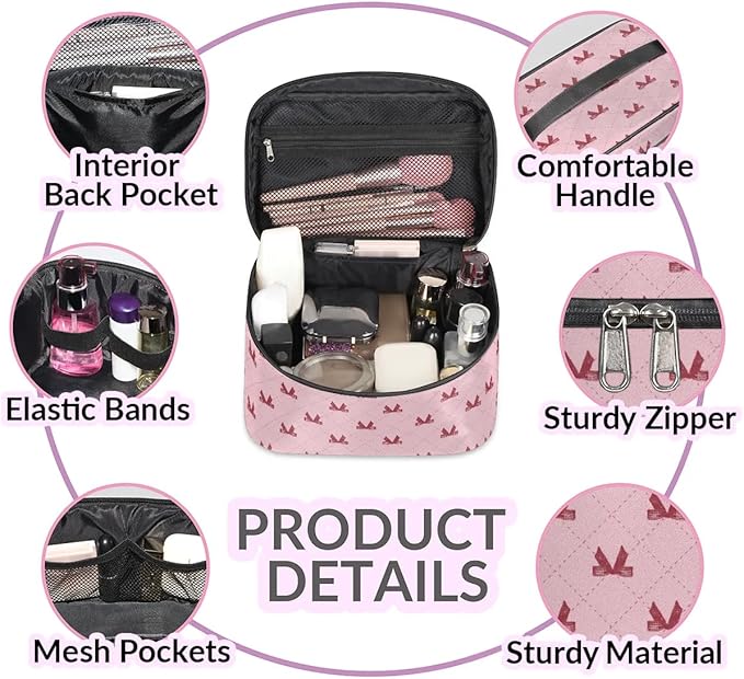 - 🍒【Large Capacity】Cosmetic bag size: 9.2x6.2x5.9 inch. Our big makeup bag can comfortably accommodate all your cosmetics and toiletries. Easy storage and help you to better organize various necessities. Portable and lightweight design makeup bag for women is perfect for your personal travels.
