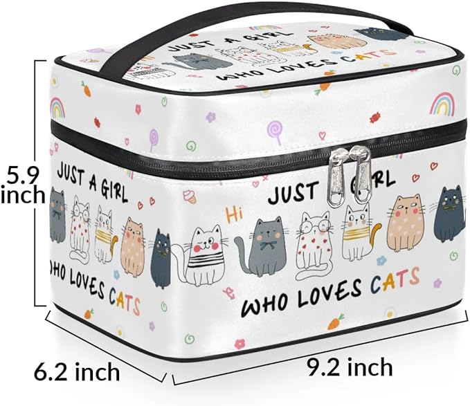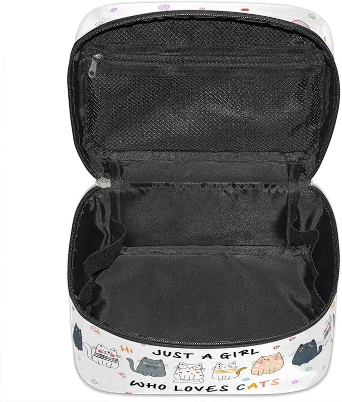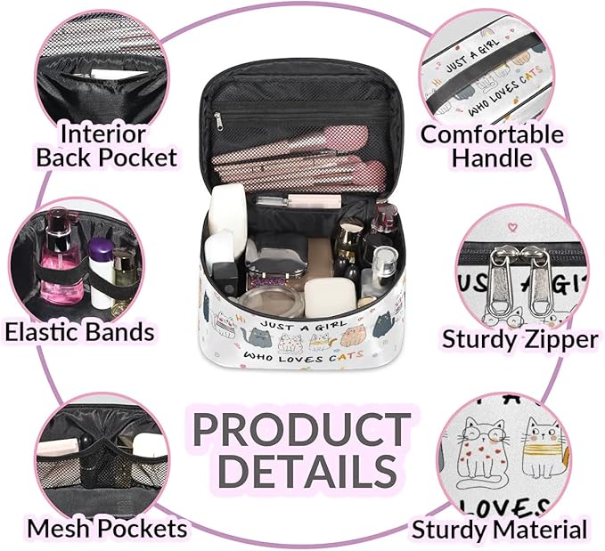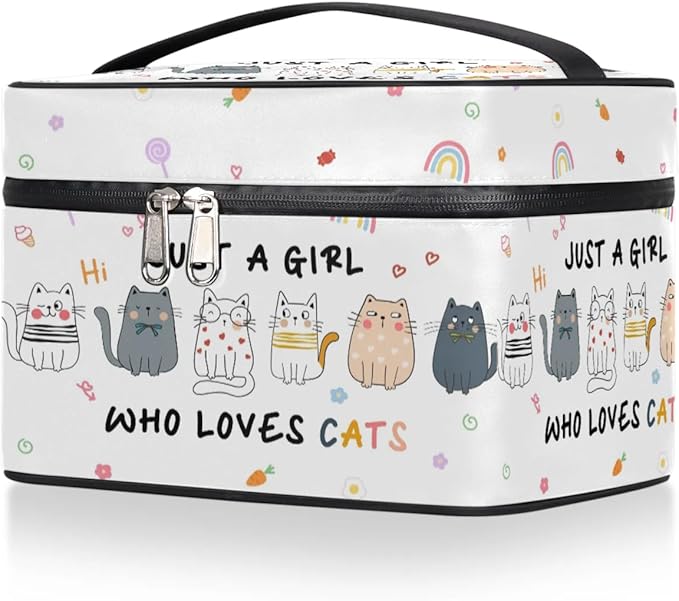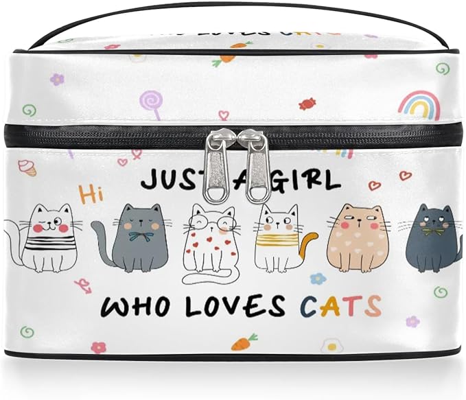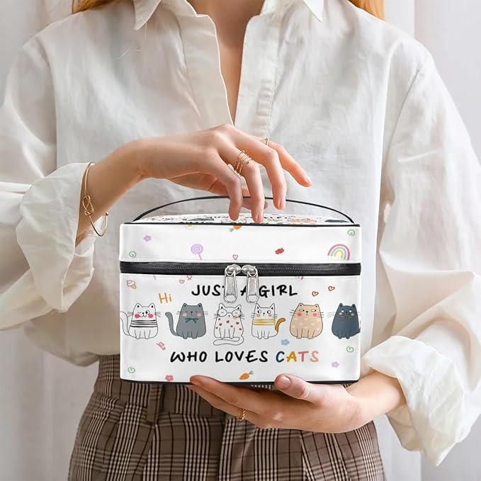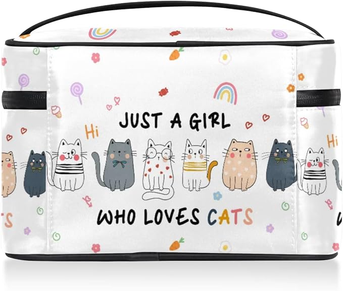 Large Makeup Bag Travel Cosmetic Bags for Women Colorful Cute Cartoon Animal Cat Makeup Organizer Case Toiletry Bag for Girls Traveling Wide Open Portable Pouch with Handle