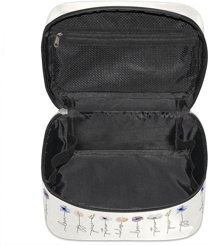 - 🍓【Easier Access Design】Features different compartments, meet all your makeup/toiletry/skincare needs. ① Wide opening main compartment: help you find and access your makeup quickly and easily.② 1x mesh zipper pocket+ 2x small mesh pockets inside: specifically designed to securely storage smaller items such as lipsticks, powder, eyeliners, foundation or travel essentials ③ 4x side wall elastic cords: separate hold your skincare products, toiletries, makeup brushes, office and other supplies.