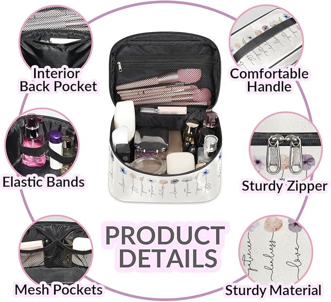 - 🍒【Large Capacity】Cosmetic bag size: 9.2x6.2x5.9 inch. Our big makeup bag can comfortably accommodate all your cosmetics and toiletries. Easy storage and help you to better organize various necessities. Portable and lightweight design makeup bag for women is perfect for your personal travels.