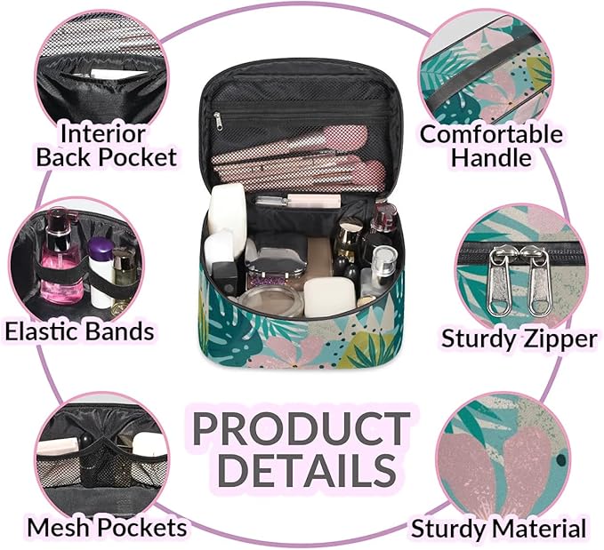 - 🍒【Large Capacity】Cosmetic bag size: 9.2x6.2x5.9 inch. Our big makeup bag can comfortably accommodate all your cosmetics and toiletries. Easy storage and help you to better organize various necessities. Portable and lightweight design makeup bag for women is perfect for your personal travels.