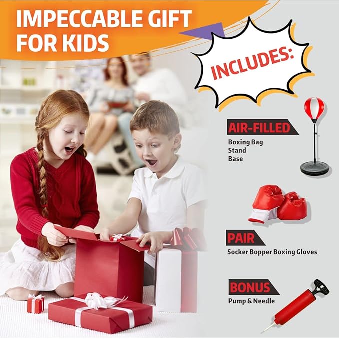 - Perfect Gift for Kids: if you're struggling with what to get your child for birthday/Christmas, trust us on kids boxing set, since our boxing bag with stand is not only suitable for girls/boys aged 3-10, but also for family interaction and daily entertainment to enhance parent-child bonding.