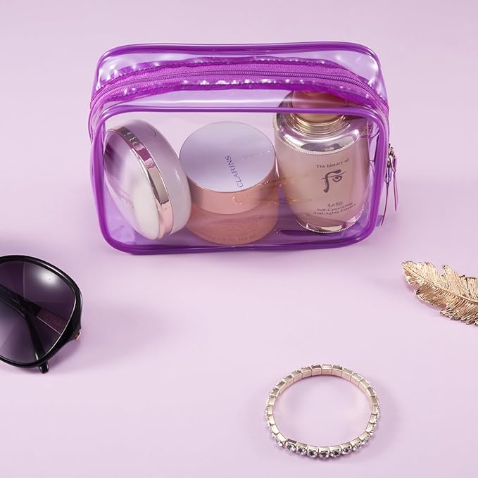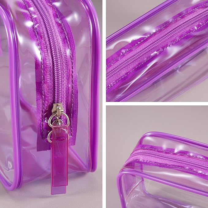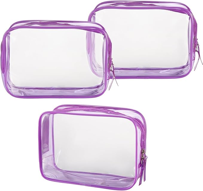 Clear Plastic Violet Zippered Toiletry Carry Pouch TSA Approved Toiletry Bag Portable Cosmetic Makeup Bag for Vacation, Bathroom and Organizing (Violet 3Pcs, Small)
