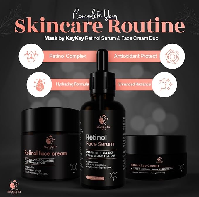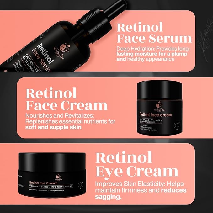 - Powerful Anti-Aging: Each product is infused with retinol to target signs of aging, ensuring a smoother, firmer, and more youthful appearance.