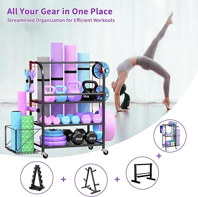 - [Versatile Storage & Ample Storage]: This weight rack is used to organize various fitness accessories, capable of holding yoga mats, foam rollers, resistance bands, and more. Dumbbell rack stand only also includes extra side hooks used for hanging jump ropes and resistance bands, maximizing space. The multi-layer design ensures all your equipment is within reach and easy to organize, solving the problem of cluttered workout spaces and keeping your home gym neat and tidy