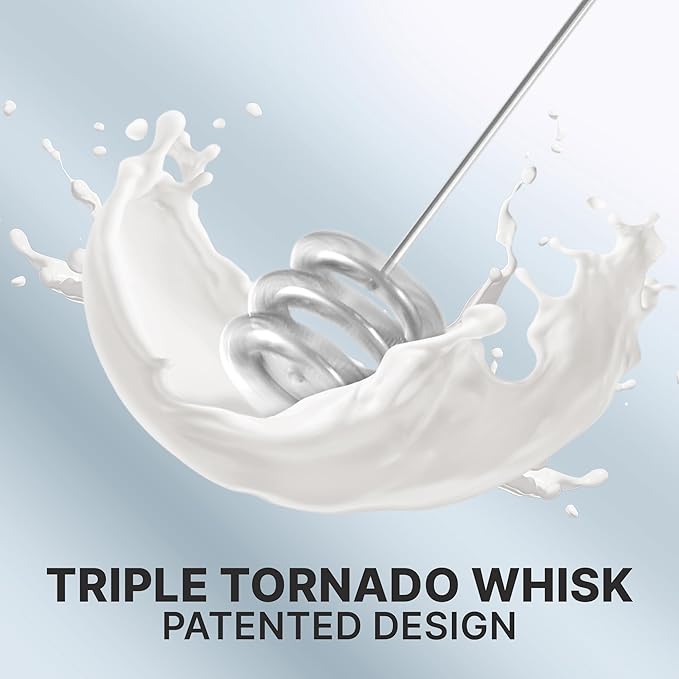 Zulay Kitchen Tornado Milk Frother Handheld Wand – Electric Coffee Frother with Triple Whisk & Stand – Hand Held Drink Mixer for Latte, Cappuccino, Matcha, Hot Chocolate, Protein Shakes – Black/Black